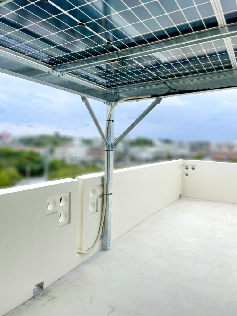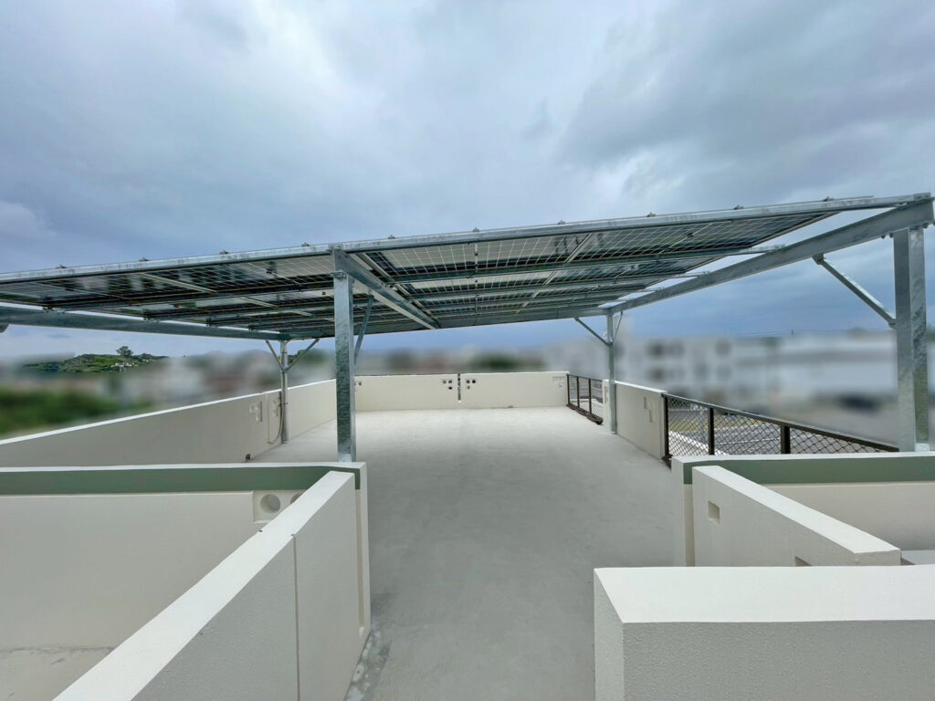 太陽光発電(DMEGCソーラー/テラス屋根仕様)蓄電池(エクソルハーウェイ) 沖縄県読谷村 I様邸